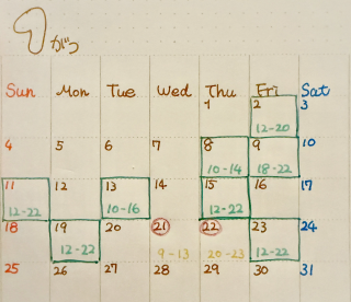 見づらい手描きカレンダーでごめんなちゃい